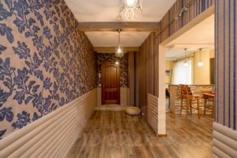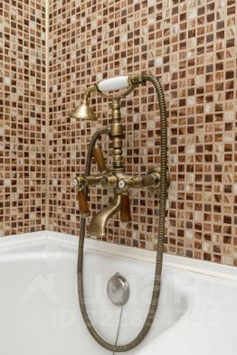 - Полное наполнение ванной комнаты: встроенный шкаф из натурального дуба, столешница для раковины, ванна, унитаз.