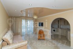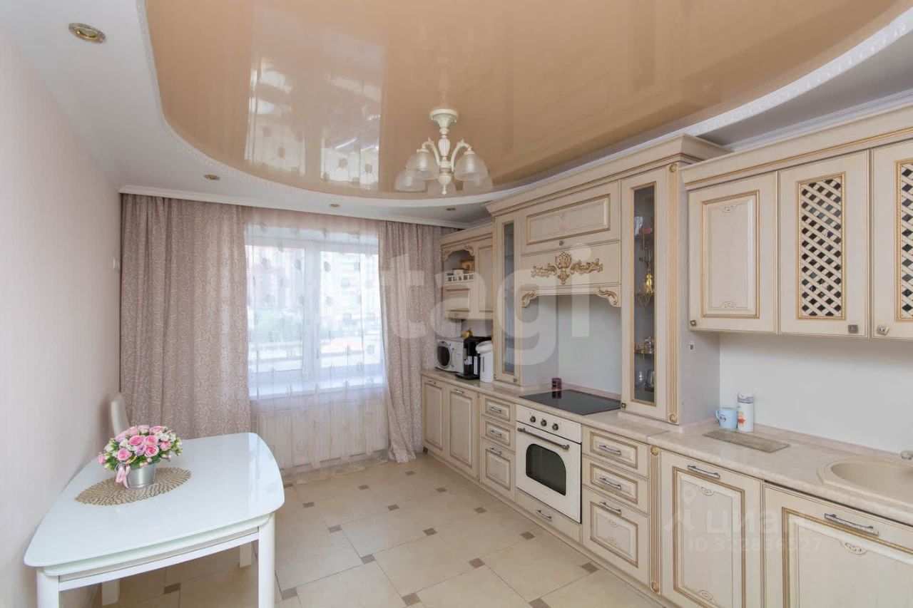 Кухня, гостиная, спальня,гардеробная, детская, 2 санузла, просторная прихожая, застекленные лоджии и открытый балкон. Ремонт выполнен из современных, качественных материалов, в спокойных тонах.