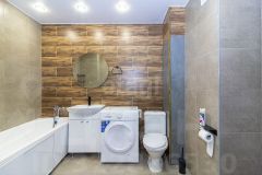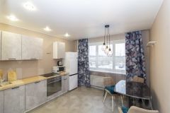 Окна на юг, вид фантастический, под окнами скоро появится школа, большие просторные парковки. Отличная планировка: общая площадь 46,5 кв.м., просторная прихожая 6 кв.м., полноценная комната 17,8 кв.м., имеется выход на лоджию. Кухня 12 кв.м., просторный санузел, большая гардеробная в коридоре. В квартире выполнен качественный ремонт в классическом стиле: светлый пол - ламинат 33 класса, прихожая, кухня и санузел - керамогранит; на стенах обои светлых тонов, установлены межкомнатные белые двери, белые плинтуса. В санузле кафель, установлена акриловая ванна, раковина-тумба, зеркало с подсветкой, имеется вывод под стиральную машину, место под вместительный хозяйственный шкаф. Установлен кухонный гарнитур, который остаётся при продаже. Натяжные потолки, предусматривающие скрытые гардыны, зонированное освещение. Двор с огромной детской площадкой.