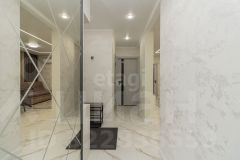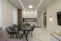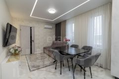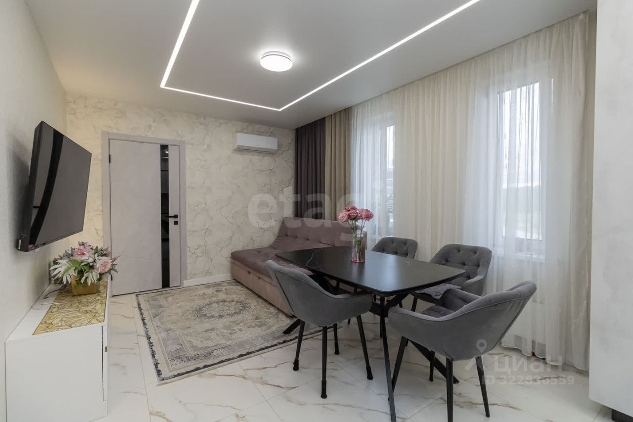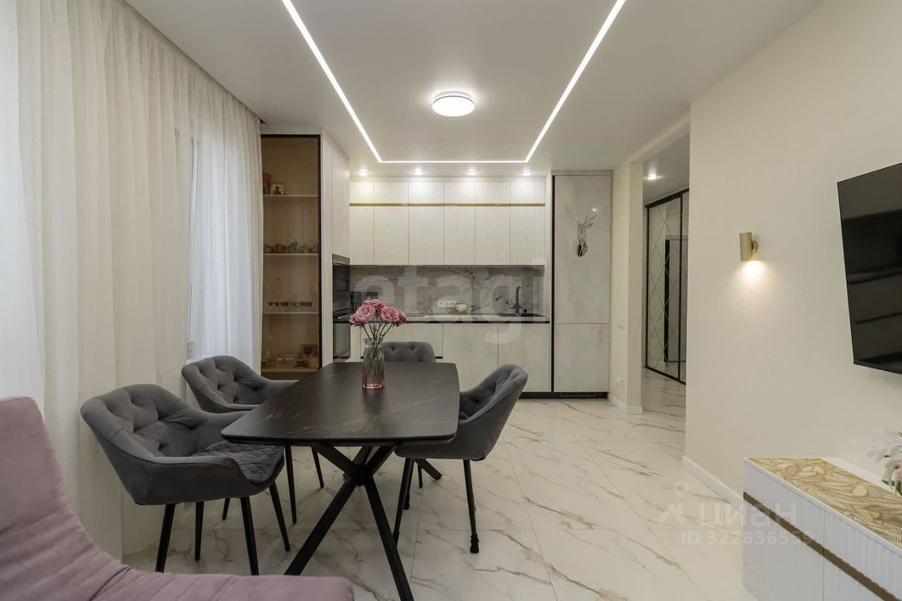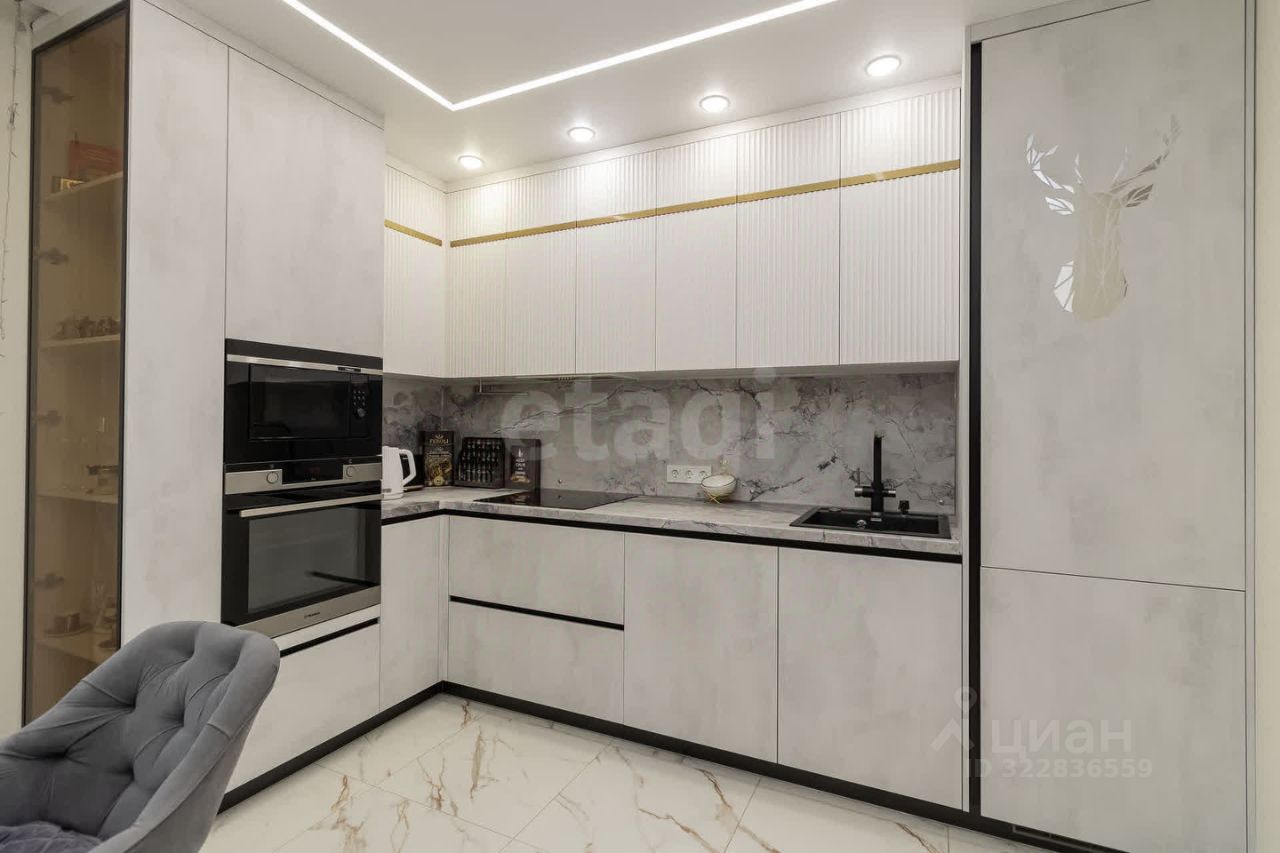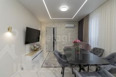 Продается трехкомнатная квартира в новом жилом комплексе с продуманной планировкой и готовым дизайнерским ремонтом. Общая площадь составляет 75 кв. м, что обеспечивает комфортное проживание для семьи. Пространство разделено на изолированные зоны: просторная гостиная совмещена с кухней, две спальни с панорамными окнами и отдельная гардеробная. Ремонт выполнен с использованием качественных материалов — керамогранит на полу, штукатурка с покраской стен, натяжные потолки со встроенной подсветкой. В квартире остается вся мебель и техника, включая кухонный гарнитур, встроенную технику, шкафы-купе и кондиционеры, что позволяет заехать сразу после покупки.