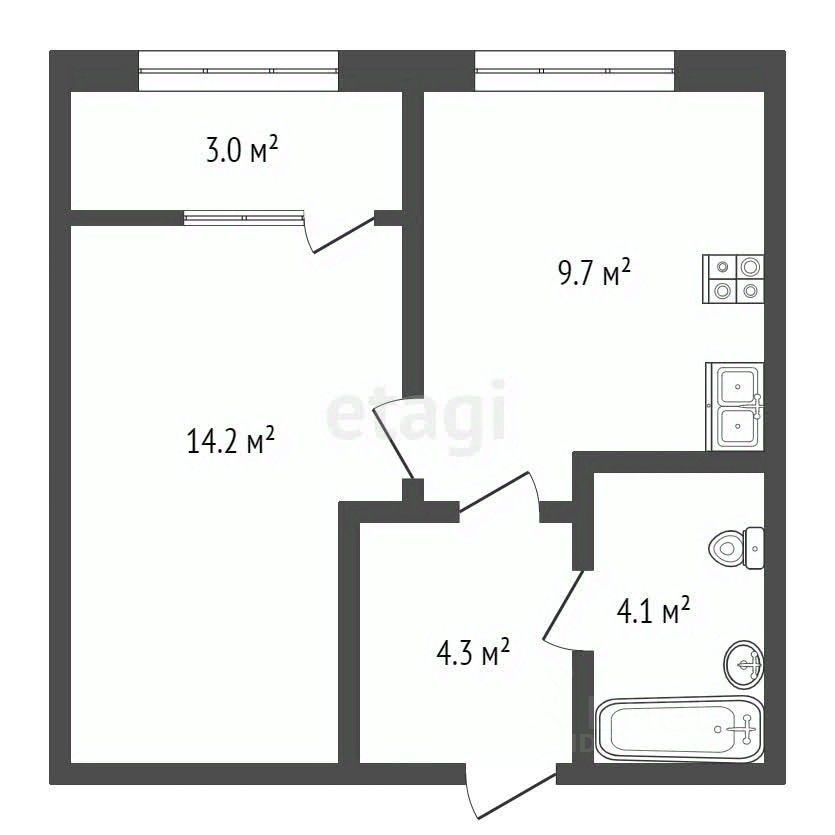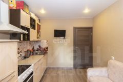 Кухня правильной формы, просторная комната с выходом на витражную лоджию, санузел и ниша под гардеробную.