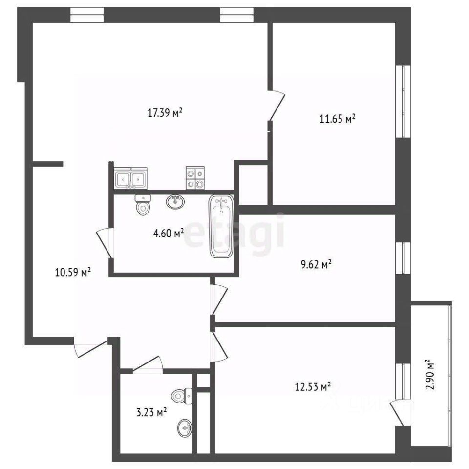 3 изолированные комнаты 11,65/ 9,62/ 12,53 кв.м. Одна из комнат с выходом на застекленный балкон)