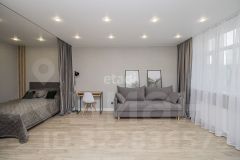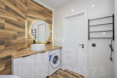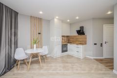 РЕМОНТ. Выполнен по дизайн проекту из современных, качественных материалов. Потолок натяжной со встроенной системой многоуровневого освещения. На стенах обои нейтральных оттенков. На полу ламинат 33 класса. Пол в зоне прихожей и ванной- керамогранит+ система теплый пол.