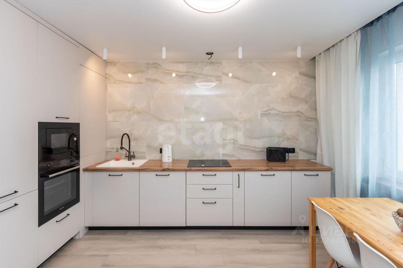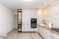 При продаже в квартире остаются все необходимые элементы для комфортной жизни: кухонный гарнитур со встроенной техникой (плита, посудомоечная машина, микроволновая печь, духовой шкаф, холодильник), уютная столовая зона и встроенные шкафы, выполненные по индивидуальному проекту. Для вашего комфорта уже установлены кондиционер, фильтры для воды и телеметрия.