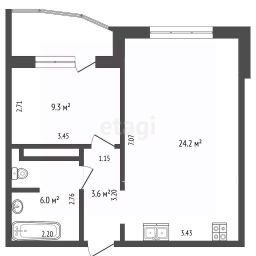К продаже представлена просторная 1-комнатная квартира площадью 43,6 кв.м.