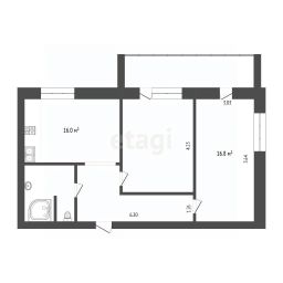 Квартира общей площадью 65,7 кв.м. с продуманным зонированием:
