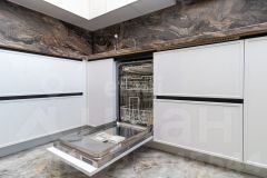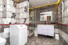 Отделка выполнена по дизайн проекту в современном стиле: немецкие обои, керамогранит, качественный ламинат, натяжные потолки.