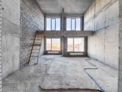Квартира свободной планировки, предполагает организацию второго уровня, "второго света". Площадь указана с учетом второго уровня. Есть возможность приобретения смежной (зеркальной) квартиры для последующего обединения.