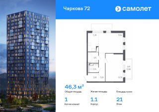 Строим кварталы для жизни с заботой о будущем. Предлагается 1-комнатная квартира комфорт-класса 46,3 кв.м в корпусе 1.1 на 21 этаже, в ЖК "Чаркова 72"