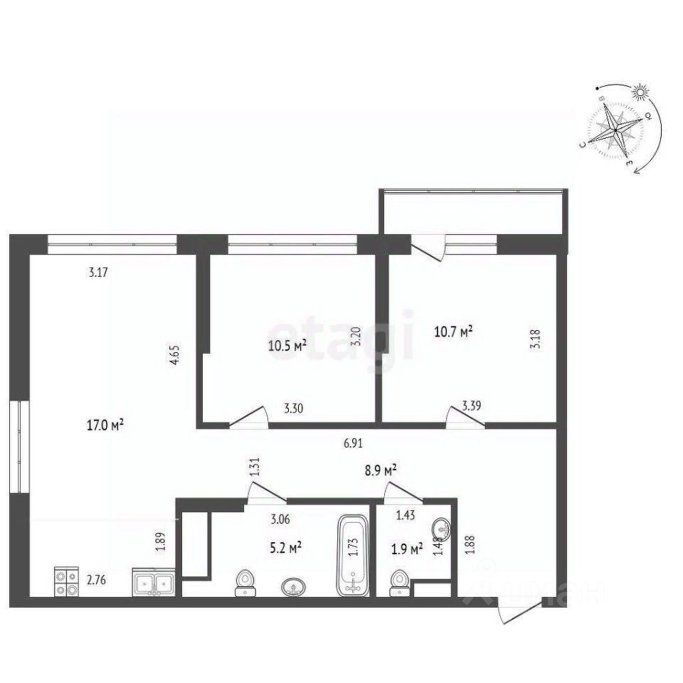 Квартира формата 2+, кухня гостиная 17,3 м2, 2 спальни 11,56 м2 и 11,67, большая лоджия 2,3 м2, раздельный просторный санузел. Цена ниже чем у застройщика! ЖК "На Гастелло" 1 очередь, сдача дома март 2024 г.
