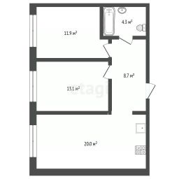ПЛАНИРОВКА. Максимально функциональная планировка квартиры- отсутствие бесполезной площади. При входе просторная прихожая (7,9 кв.м.) . Кухня (20 кв.м) и две изолированные спальни (11,9 кв. м. и 13,1кв.м) имеют правильную форму, что очень удобно при зонировании пространства и расстановки мебели.
