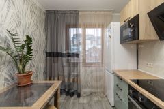 Кухня (7,8 м²) выполнена в современном стиле, полностью меблированная. Установлены свежая техника и кухонный гарнитур.