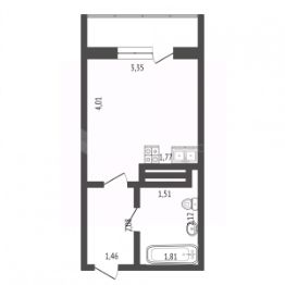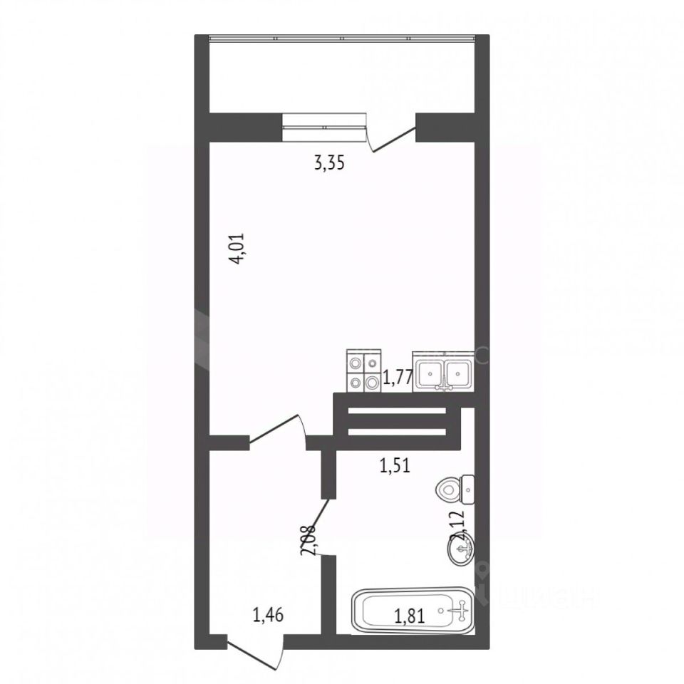 Площадь квартиры - 23 кв.м, светлая и просторная, с застекленным балконом.