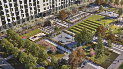Вокруг комплекса создана идеальная инфраструктура: современные детские площадки, обширные парковочные зоны и ухоженные зеленые зоны для отдыха.