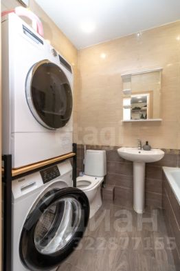В квартире выполнен современный ремонт , при входе в квартиру размещена большая гардеробная , где можно разместить все необходимое , даже оборудовать рабочее место с компьютером и техникой . Сан узел позволяет вместить стиральную и сушильную машину . Сама жилая площадь функциональная при желании , с помощью дизайнерских решений , можно разделить обеденную и жилую площадь .