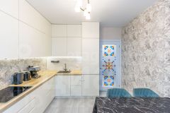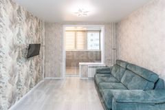 В квартире выполнен современный ремонт, светлые оттенки визуально расширяют пространство , утепленный балкон выполнеят роль дополнильного пространсва, где можно оборудовать рабочее место. В сан узле установлена большая душевая кабина , сушильная и стиральная машинки. На кухне белый вместительный кухонный гарнитур. Сама квартира наполнена светом . В ней чисто и уютно . Остается все !