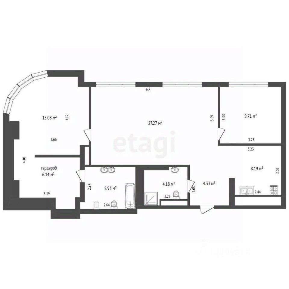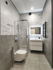 Планировка квартиры продумана до мелочей: просторная кухня-гостиная с большим диваном и ТВ-зоной, две отдельные спальни, одна из которых оборудована гардеробной системой. Входная зона включает вместительную прихожую со встроенными шкафами для удобного хранения вещей. Санузлов два — гостевой и основной с ванной, что обеспечивает комфорт для жильцов и гостей. Отделка выполнена качественно: пол из износостойкого кварц-винила, кухня оснащена встроенной техникой (посудомоечная машина, холодильник, варочная панель, вытяжка, духовой шкаф, микроволновая печь), а фартук из керамогранита добавляет практичности и стиля.