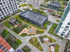 Дом находится на закрытой территории с системой видеонаблюдения и контролем доступа, обеспечивая безопасность жильцов. Во дворе отсутствует автомобильное движение, что делает его безопасным для детей и домашних животных. Благоустроенная территория включает детские и спортивные площадки, зоны отдыха с фонтанами и водным каналом. Подземный паркинг защищает автомобиль от непогоды и избавляет от необходимости искать место для парковки.