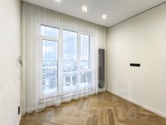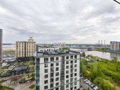 Окна квартиры выходят во двор и на реку, где в перспективе будет обустроена набережная, что создает приятный вид и потенциал для роста инвестиционной привлекательности. Панорамное остекление и французский балкон усиливают ощущение простора и света.