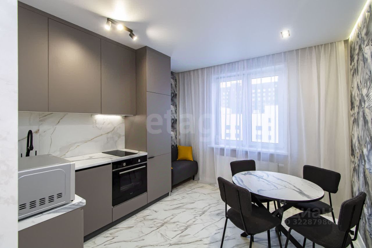 Планировка 1+ включает в себя просторную кухню-гостиную, изолированную спальню и стильный совмещенный санузел. Дополнительное пространство в виде гардеробной можно использовать как рабочий кабинет или место для хранения вещей. Современный ремонт выполнен в теплых, приятных тонах, создавая атмосферу уюта и спокойствия. Квартира полностью меблирована и готова к вашему заселению: здесь есть всё необходимое современный кухонный гарнитур, шкаф-купе, обеденный стол, удобный диван и кровать. Вся бытовая техника также входит в комплект!