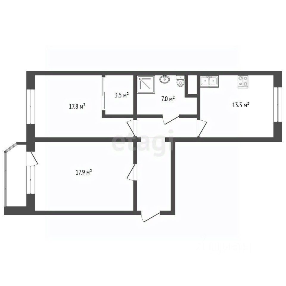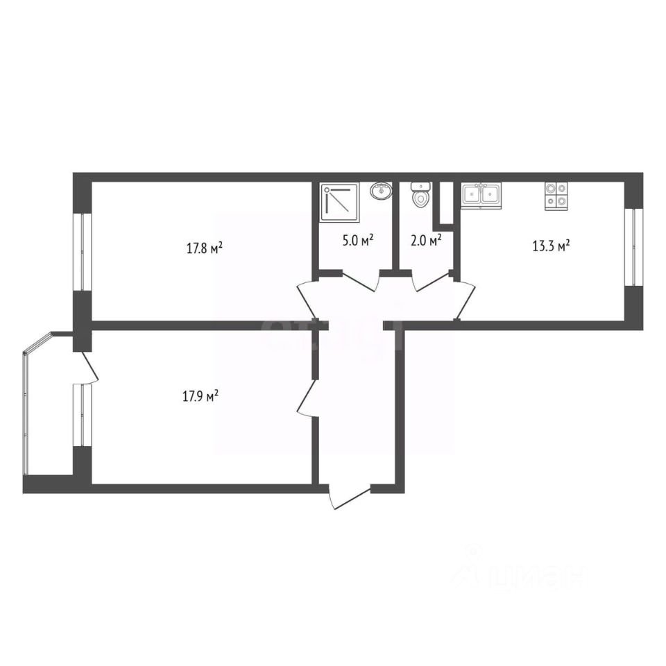 Планировка-распашонка. Большая кухня и две отдельные спальни, с одной из спален выход на большую, теплую лоджию, на которой можно оборудовать кабинет или игровую зону.