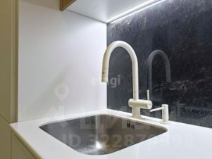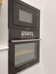 На кухне установлен гарнитур, который изготавливался под заказ, все продумывалось до мелочей, у фасадов специальное покрытие на котором не остаются пятна. Фартук из цельного керамогранита, техника встраиваемая немецкого производства (холодильник, посудомоечная машина, варочная панель, дух шкаф, вытяжка и микроволновка). Смеситель, встроенный дозатор и мойка фирмы Franke.