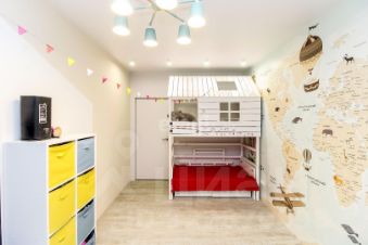 Сан узел совмещен, установлен теплый пол, выложен керамогранитом и установлена качественная сантехника и встроенная мебель. Обои в детской комнате покрыты специальным прозрачным лаком, что еще больше из бережет от вандальных действий и легко моются.