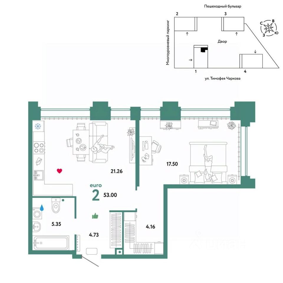 Продается 2комнатная квартира от застройщика "Страна Девелопмент". Стоимость указана без учета акций. Квартира на 29 этаже, площадь квартиры 53 кв. м. Сдача — в 3 квартале 2025 года. Четыре 32-этажные башни со смещенными осями, объединенные общим стилобатом. На крыше дома появятся детские и спортивные площадки, зоны для релакса и отдыха. А в самом стилобате — торговая галерея и паркинг. У жителей будет свой сад с площадкой для йоги и воркаута, а еще с лаунж-зонами для чтения книг и пикников в тени деревьев. Пока вы занимаетесь спортом или отдыхаете, дети смогут вдоволь набегаться на детских площадках. "Звездном" есть планировочные решения под потребности каждой семьи. Среди их особенностей — просторные кухни-гостиные, мастер-спальни, гардеробные и кладовые. А для тех, кто ищет особенный вариант — двухуровневые квартиры с отдельным входом и квартиры с бильярдной или фитнес-залом. ОТДЕЛКА: Мы сдаем квартиры с предчистовой отделкой. Всё уже готово к ремонту: выведена разводка электричества и отопления, выполнена стяжка пола, стены выровнены. Вам останется выбрать материалы и приступить к ремонту. При покупке квартиры в ЖК "Звездный" можно включить стоимость ремонта в ипотеку. Застройщик предлагает три варианта цветовых решений: натуральный, светлый или тёмный. СПОСОБЫ ПОКУПКИ: Сотрудники Страны Девелопмент будут сопровождать вас на каждом этапе сделки, помогут получить одобрение по ипотеке или снизить ежемесячный платеж. -Ипотека -Материнский капитал -100% оплата наличными