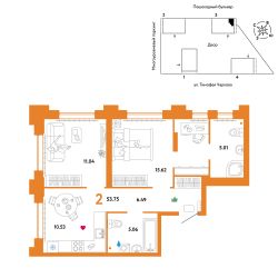 Продается 2комнатная квартира от застройщика "Страна Девелопмент". Стоимость указана без учета акций. Квартира на 17 этаже, площадь квартиры 53,75 кв. м. Сдача — в 3 квартале 2025 года.