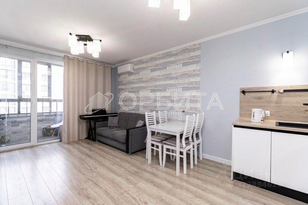 Квартира расположена в одном из самых престижных микрорайонов Тюмени — Европейском. Общая площадь включает кухню-гостиную 21 м.кв., спальню 12, 5 м.кв. и совмещенный санузел 6 м.кв. Гостиная выходит на лоджию, с видом на реку Тура, что создает ощущение простора и дополнительный комфорт. Квартира выполнена в современном стиле с качественной отделкой: хороший ремонт, установлен кондиционер, встроенная гардеробная система, техника BOSH.