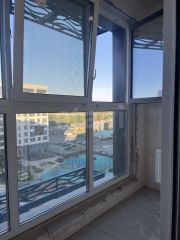Квартира-студия с пaноpамным oстеклением оснащенная пластиковыми окнами с тройным стеклопакетом и серым цветным профилем, что обеспечивает высокий уровень шумоизоляции и энергоэффективности.