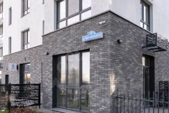 Подъезды выполнены на уровне земли, что обеспечивает комфортный доступ. На первых этажах расположены санузлы с прачечными, холлы оснащены грязезащитным покрытием, а во дворе обустроена площадка для выгула животных.