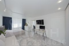 Квартира находится в отличном состоянии благодаря свежему ремонту, выполненному в 2024 году с использованием качественных материалов в светлых нейтральных тонах, что визуально увеличивает пространство. Планировка продумана: просторная кухня удобно зонируется, позволяет разместить обеденную группу и технику, гостиная объединяет жилую и гардеробную зону.
