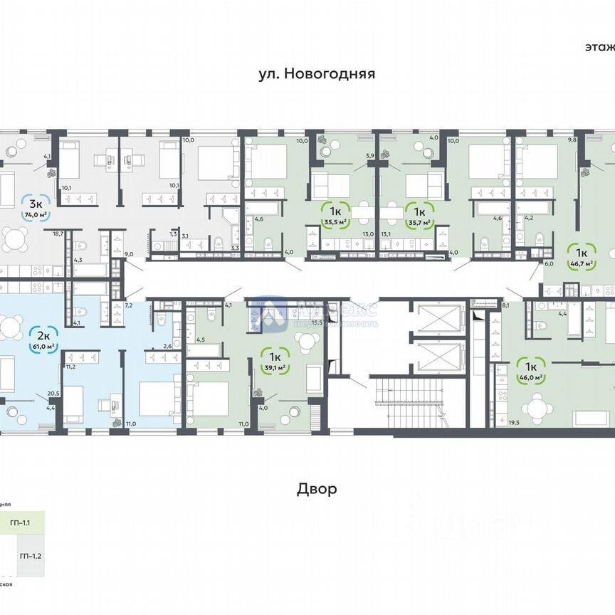 В проекте широкий выбор квартир: площадью от 34 до 74 м2, с мастер-спальнями, постирочными, просторными кухнями-гостиными, двумя санузлами, с окнами в ванной.