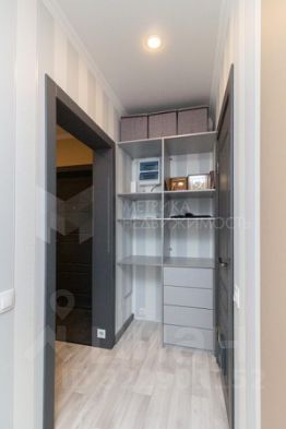 - Прихожая с вместительным шкафом купе и пуфиком для комфортной смены обуви