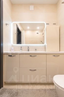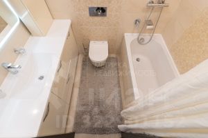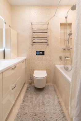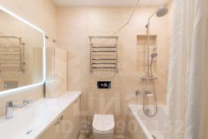 - Сан узел в современном стиле, ванной, тропическим душем, полотенцесушитель и навесная инсталляция