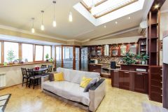 Внутри выполнен качественный дизайнерский ремонт, который гармонично сочетает уют и современность. Теплая атмосфера квартиры создается благодаря пробковому покрытию на полу и настоящему камину на дровах — идеальному месту для романтических вечеров или уютных семейных посиделок. Здесь продумано все до мелочей: встроенные шкафы-купе и выдвижные шкафчики обеспечат порядок и комфорт.
