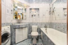 Санузел совмещен и облицован плиткой. В квартире установлен кондиционер. При продаже остаются кухонный гарнитур со встроенной техникой "Electrolux" и два вместительных шкафа-купе, что позволит вам сразу же наслаждаться жизнью в новом доме.