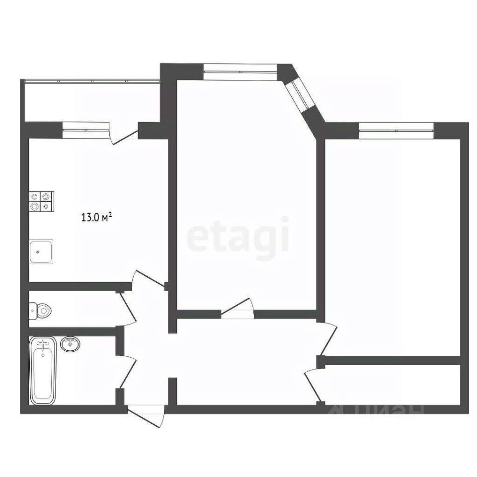Просторная кухня -13 м2, балкон 3 м2 с выходом из кухни. Гарнитур, холодильник и вся остальная техника остается новым хозяевам