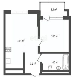 Просторная жилая комната площадью 10,5 м² станет вашим личным оазисом, а кухня площадью 16,4 м² позволит вам реализовать все кулинарные мечты. В ванной комнате (4,5 м²) и прихожей (3,2 м²) предусмотрено всё необходимое для комфортного проживания.