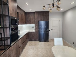 Выполнен современный ремонт из качественных материалов - уложен бельгийский ламинат, керамогранит от КЕRАМА МАRАZZI, вся сантехника фирмы Grоhе, столешницы цельные с мойками из искусственного камня. Вся мебель встроенная, изготовленная на заказ фасады МДФ, фурнитура ВLUМ. Двери от известной фирмы Волховец это гарантия качества и современного дизайна. В санузлах установлены напорные вытяжки с обратными клапанами, что препятствуют проникновению в квартиру посторонних запахов. Выключатели импульсные, что позволяет настраивать разные сценарии света.