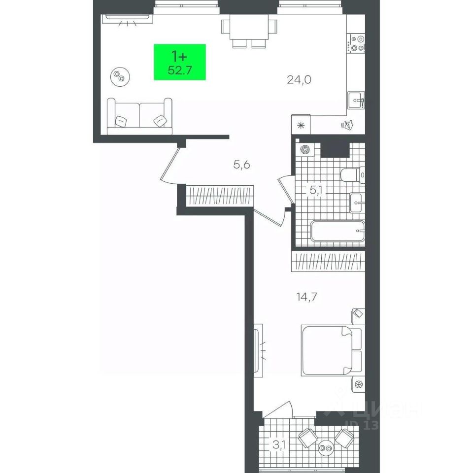 Продаётся 1-комнатная квартира в строящемся доме (3-В7.2 (Малкова, 17)), срок сдачи: III-кв. 2026, общей площадью 52.71 кв.м., на 5 этаже. Компания 4D приступила к строительству нового жилого комплекса "Гранд квартал". Новый ЖК находится в зеленой зоне Калининского района, южнее микрорайона Тюменская слобода.
