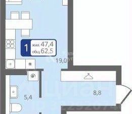 ЖК "Ожогино" - это малоэтажные дома с закрытой территорией, где есть всё для комфортной жизни: детские площадки, спортивные зоны и пешеходные тротуары. Квартира расположена на первом этаже четырёхэтажного монолитного дома. Её общая площадь составляет 62,5 кв. м, жилая - 14,2 кв. м, площадь кухни - 19 кв. м. Высота потолков - 3,1 м.
