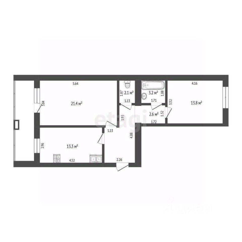 - Просторные комнаты, а планировка 2+ позволит вам реализовать эргономичный дизайн проект на свой вкус;
