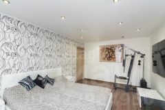 Просторная трехкомнатная квартира улучшенной планировки общей площадью 90 кв.м расположена в тихом, хорошо озелененном районе с развитой инфраструктурой. Планировочное решение включает три изолированные спальни и объединенное пространство кухни-гостиной, что создает комфортные условия для жизни семьи. Все жилые комнаты изолированы, окна выходят во двор, что гарантирует абсолютную тишину и отсутствие пыли, так как дом удален от проезжих частей. Ориентация по сторонам света — восток-запад — обеспечивает равномерное естественное освещение в течение всего дня. Квартира передается с ремонтом: на стенах обои, полы из ламината и плитки, установлены натяжные потолки. Вся мебель и частично бытовая техника, включая бойлер для бесперебойного горячего водоснабжения, остаются новому владельцу.