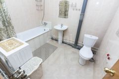на стенах свежие обои. Санузел отделан кафельной плиткой, а балкон застеклен.