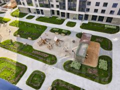 Закрытые дворы без машин обеспечивают безопасную среду и тишину в микрорайоне. Придомовая территория проекта продумана таким образом, где каждый найдёт себе занятие по душе, будь это детские игры или отдых и досуг для взрослых. В данном проекте у застройщика предусмотрена безбарьерная среда. Она обеспечивает беспрепятственное, безопасное, независимое передвижение маломобильных групп населения в условиях окружающей среды.