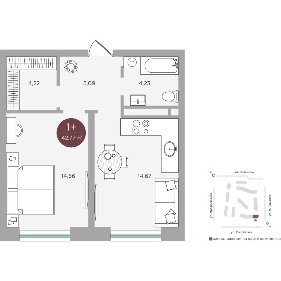 Территория квартала - это квадрат улиц Профсоюзная-Республики-Советская-М.Горького. Застройщиком спроектированы квартиры от студий до четырехкомнатных, общей площадью от 29.6 до 146.3 кв. м. Дома сдаются в предчистовой отделке.