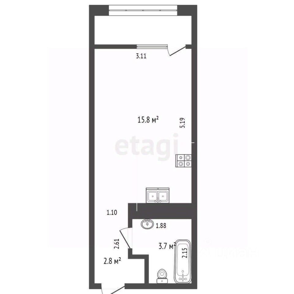 Продается студия 26 м² с улучшенной черновой отделкой в ЖК "Акватория"