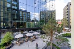 Жилой комплекс спроектирован голландским архитектурным бюро и отличается продуманной геометрией пространства. В здании предусмотрено панорамное лобби с зонами для отдыха и ресепшеном, где можно заказать кофе. Территория благоустроена: закрытый двор с парковой зоной и аллеями создает комфортную среду для прогулок. Безопасность обеспечивается круглосуточным видеонаблюдением, системой контроля доступа по чип-ключам и интегрированной автоматикой управления инженерными системами.